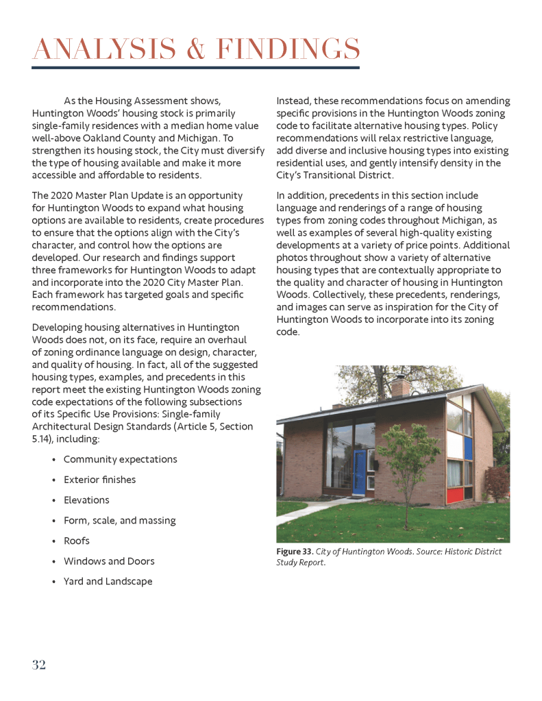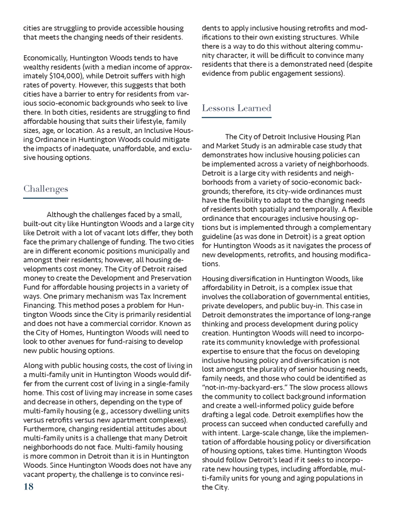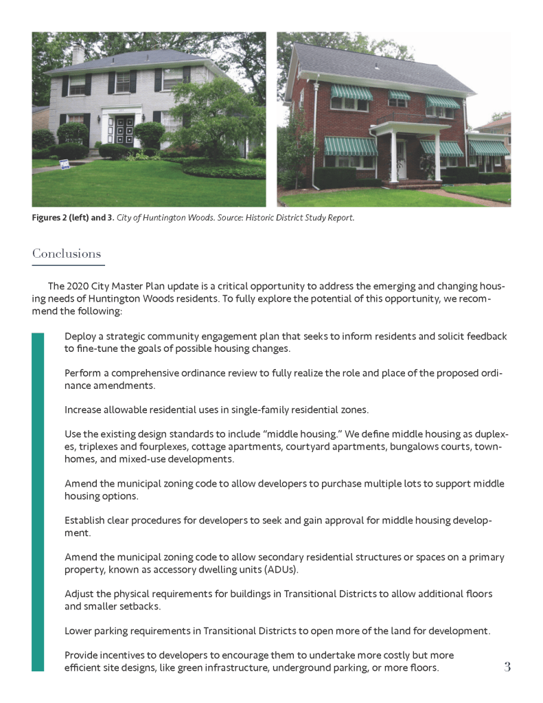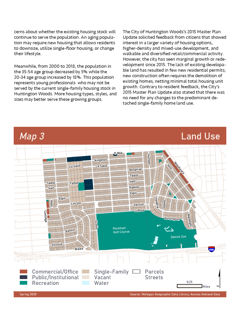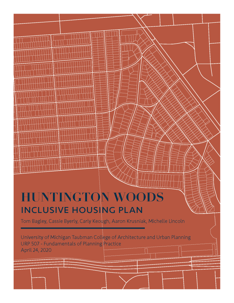 (Spring 2020) This housing plan was created for the City of Huntington Woods, Michigan as part of a University of Michigan graduate course entitled Fundamentals of Planning Practice. Project members included Tom Bagley, Cassie Byerly, Carly Keough, Aaron Krusniak, and Michelle Lincoln.