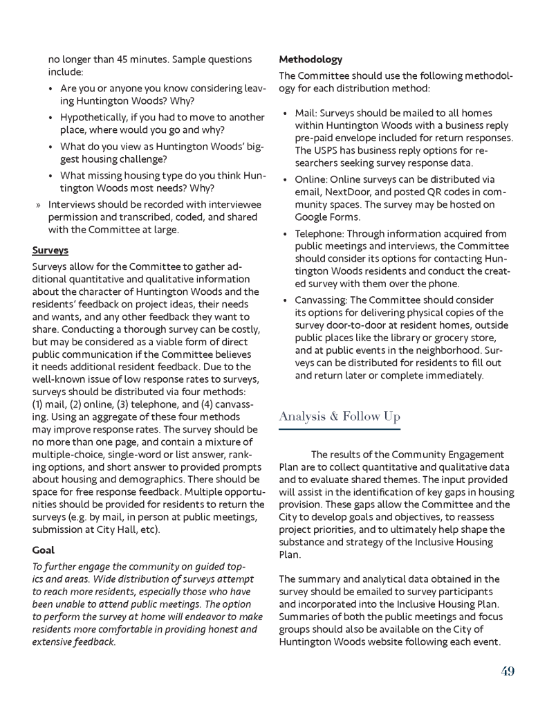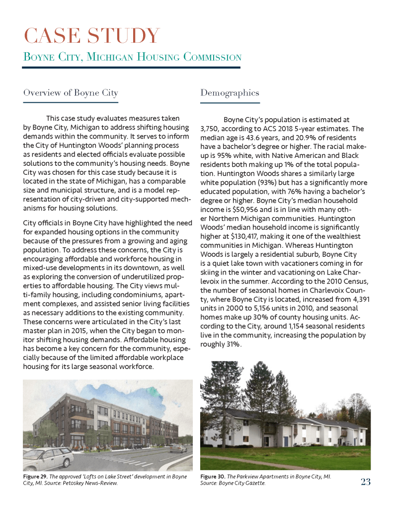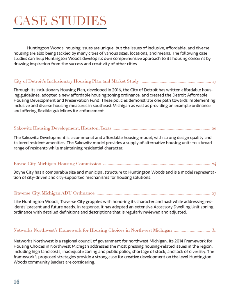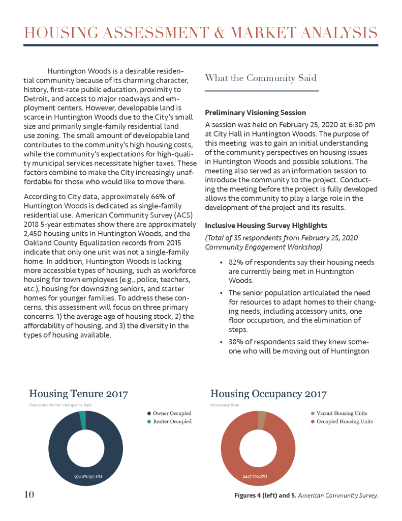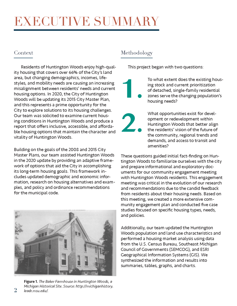 (Spring 2020) This housing plan was created for the City of Huntington Woods, Michigan as part of a University of Michigan graduate course entitled Fundamentals of Planning Practice. Project members included Tom Bagley, Cassie Byerly, Carly Keough, Aaron Krusniak, and Michelle Lincoln.